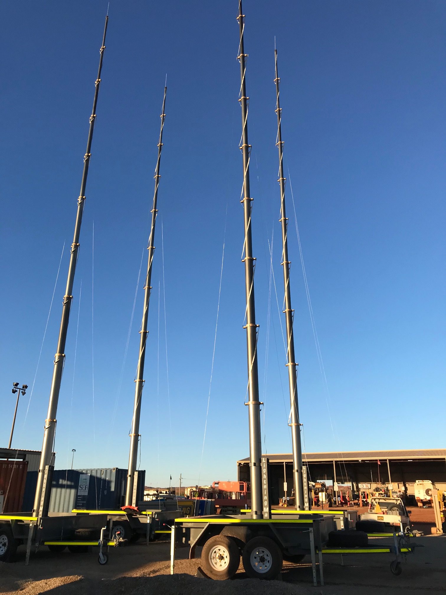 The LightningMast safe productivity trailers are a self powered and self contained portable lightning protection solution, which can be deployed by a single operator in less than 6 minutes.