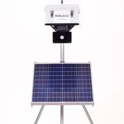 Multi-function, Single remote siren station with one all-weather 120-degree directional horn, Solar PV array, radio receiver, AC-power supply with rechargeable battery backup, mounting plate, and antenna.