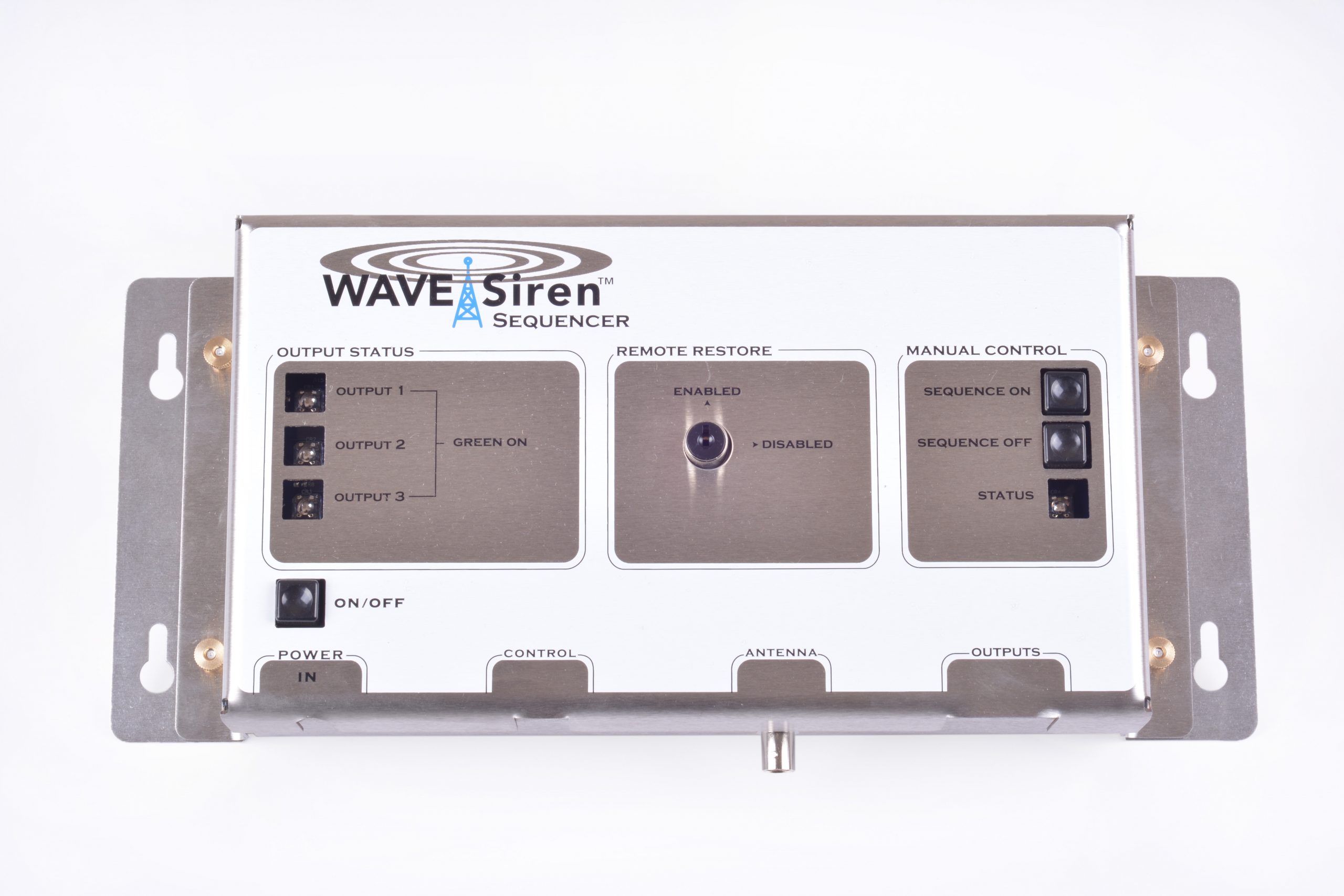 The WAVE Transmitter sends secure coded RF messages to activate an unlimited number of Siren Stations and Sequencers within a five km radius.