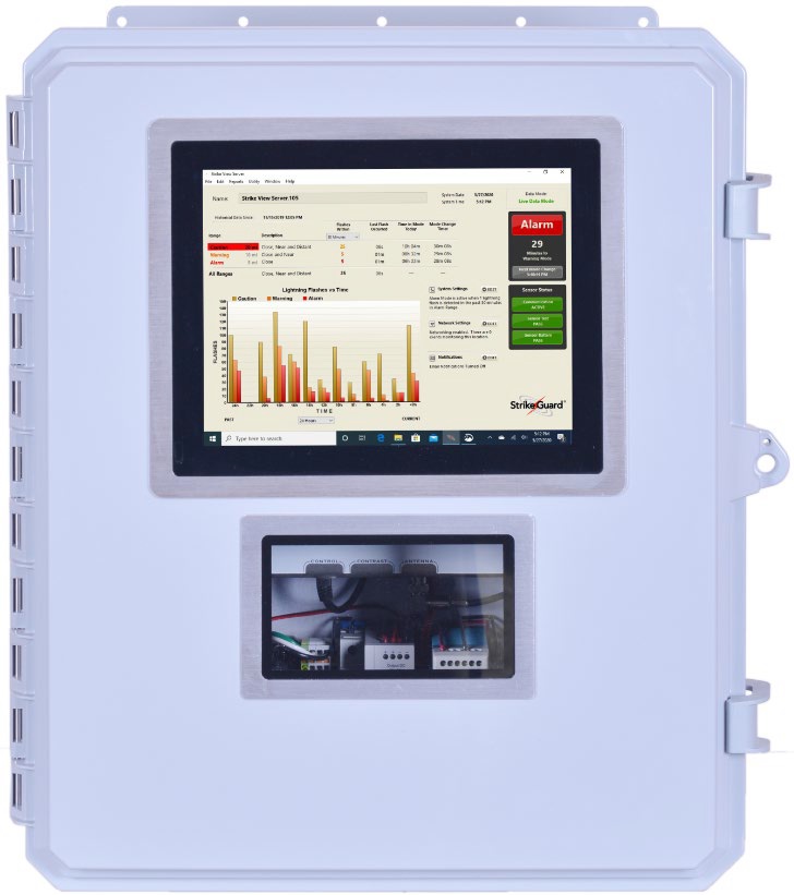 Strike Guard Lightning Data Receiver & WAVE Transmitter (sold separately) are assembled and mounted in a 20 x 16 x 10 inch enclosure.